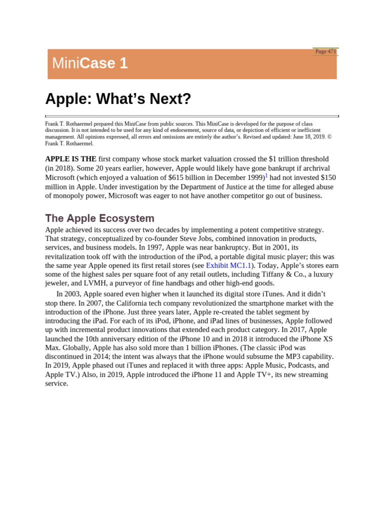 temporary competitive advantages (see Exhibit MC1.1). Taken together, this enabled Apple to