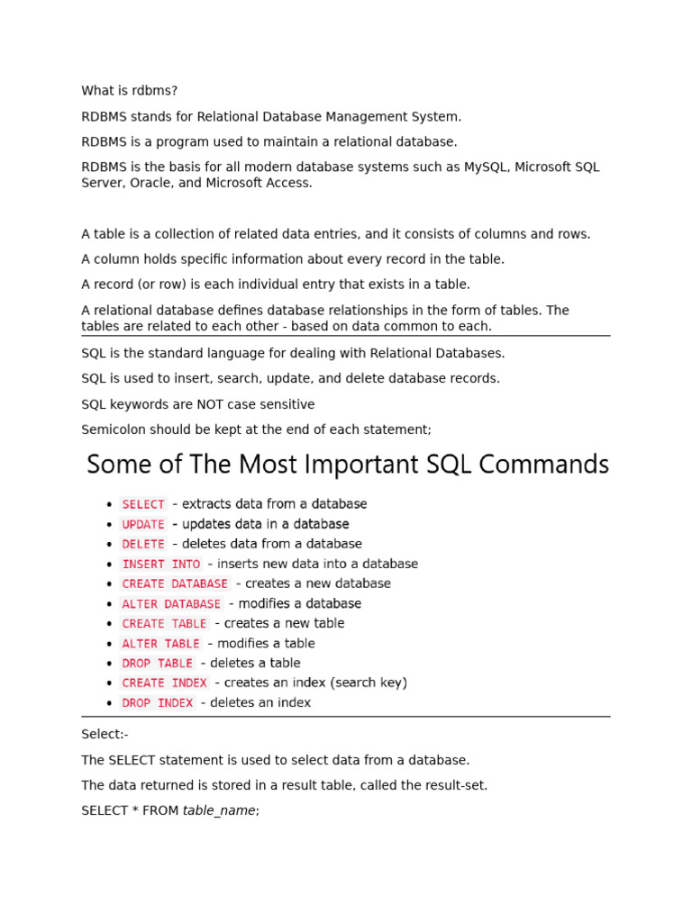 PRIMARY KEY - A combination of a NOT NULL and UNIQUE. Uniquely identifies