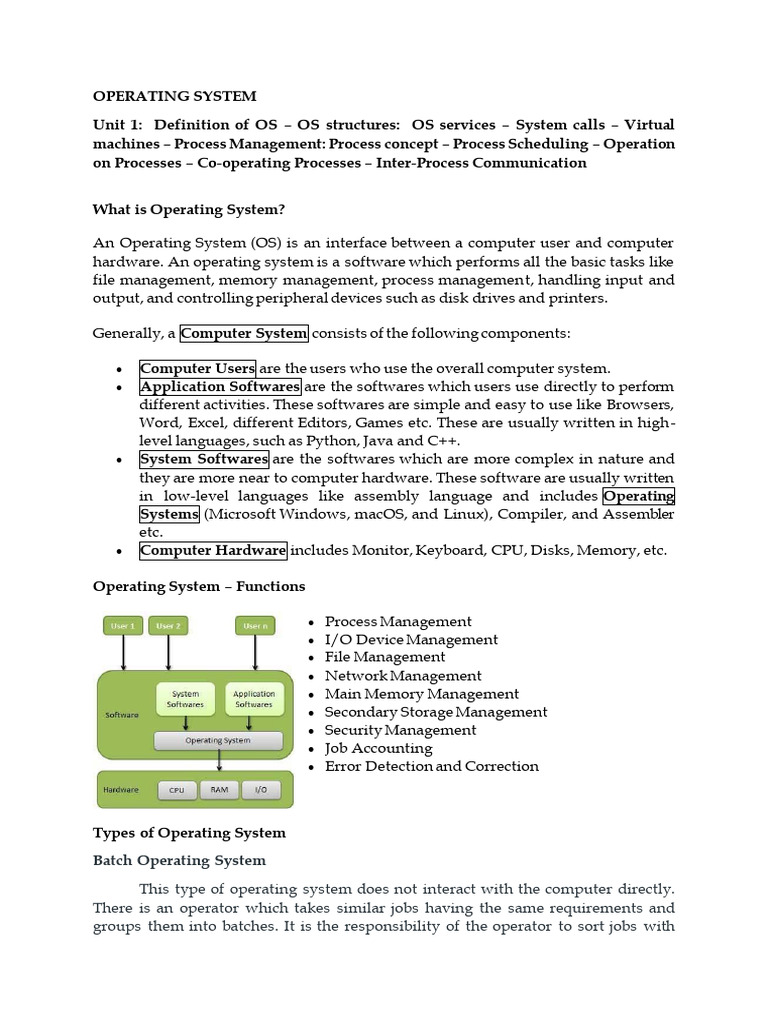 Unit 1: Definition of OS – OS structures: OS services – System calls – Virtual
