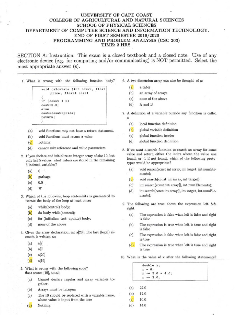 SECTION A: Instruction: This exam is a closed textbook and a closed note. Use of any