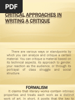 CRITICAL APPROACHES IN WRITING A CRITIQUE- are the different perspectives one should
