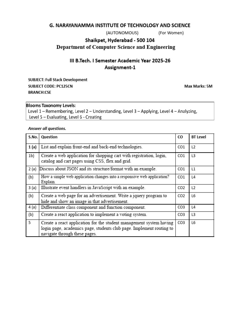 SUBJECT: Full Stack Development