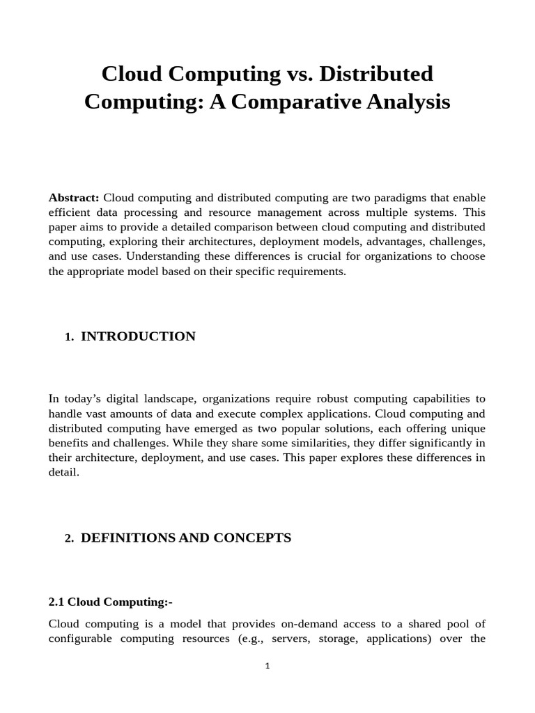 paper aims to provide a detailed comparison between cloud computing and distributed