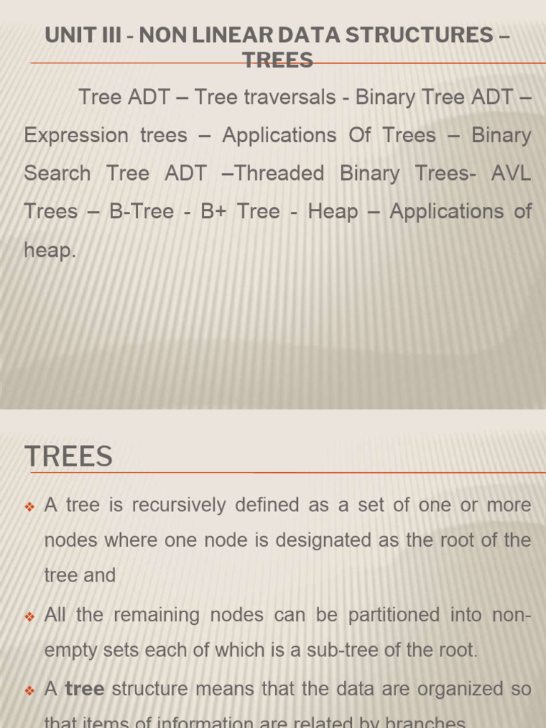 UNIT III - NON LINEAR DATA STRUCTURES –