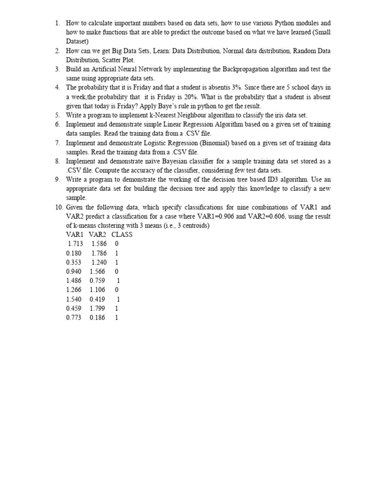 10. Given the following data, which specify classifications for nine combinations of VAR1 and