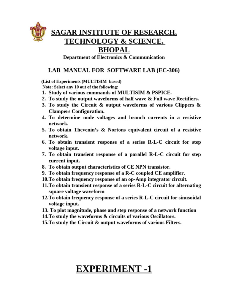 LAB MANUAL FOR SOFTWARE LAB (EC-306)