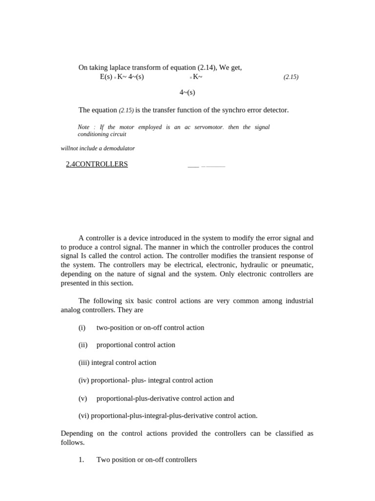 (v) proportional-plus-derivative control action and