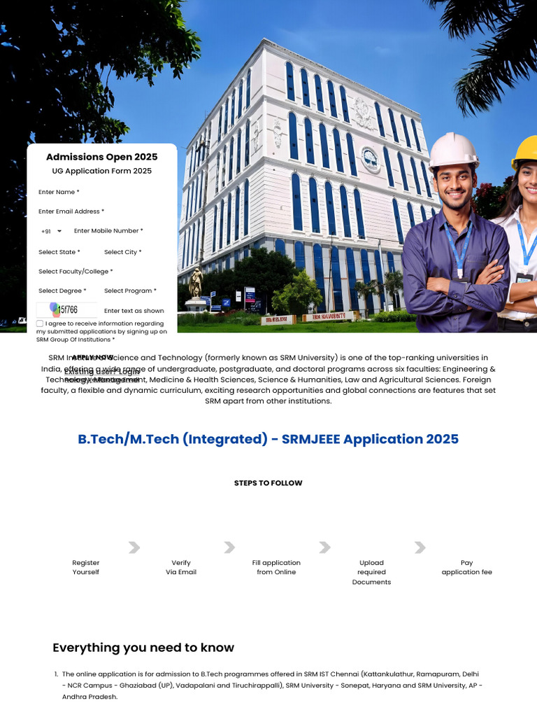 1. The online application is for admission to B.Tech programmes offered in SRM IST Chennai (Kattankulathur, Ramapuram, Delhi