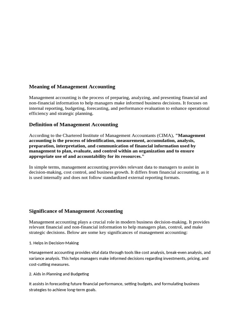 Management accounting plays a crucial role in modern business decision-making. It provides
