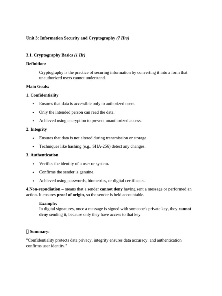 Unit 3: Information Security and Cryptography (7 Hrs)