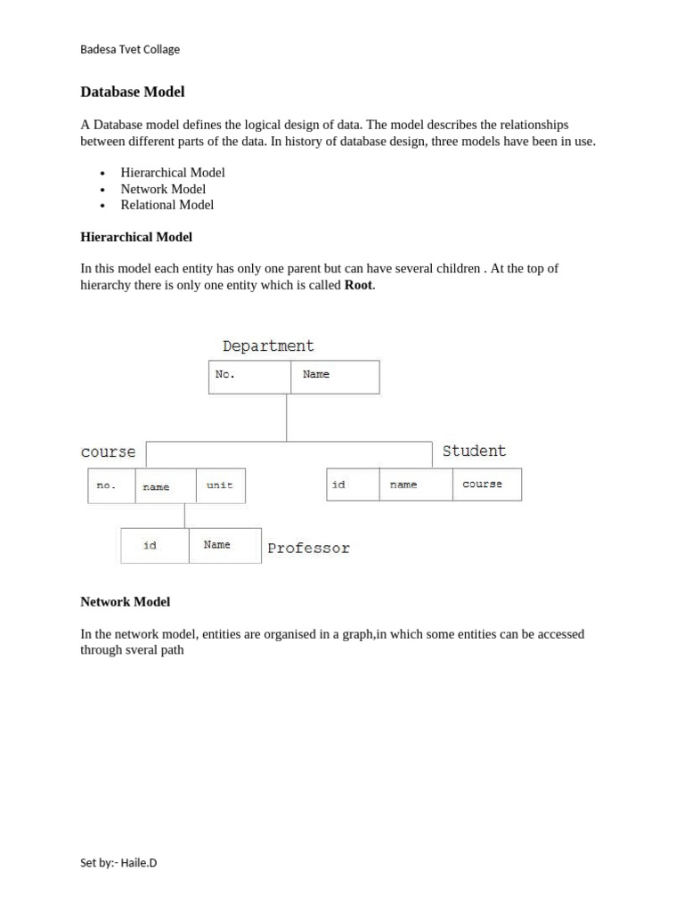 In the network model, entities are organised in a graph,in which some entities can be accessed