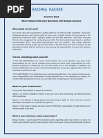 younger people with whom I work; it was my job to get to know them and for us to find common ground where we could effectively work together. It took time, but the result was worth the effort. 20. Questions about your career goals. The overall theme for each of the answers below is: have you thought about the impact of your decisions at the time you made them - or do you have a reactive response to most situations. Far too often, a person's career appears to have happened by chance. In todays fast-paced, ever changing world of work, employer's want to know if they can count on you to make good decisions, not knee-jerk reactions. Start with your graduation from college and explain the rationale behind each of your career moves. When I graduated from college, I was immediately recruited by the ABC Company. As my resume reflects, I received two promotions and then a recruiter contacted for the position at the XYZ Company. I've been there for the past 4 years and have learned a great deal, while making significant contributions to my department. Also, explain the thinking process that went into make each of those decisions. For my first job, I was happy to know I would be working in a job that utilized my education. It was exciting to know that within just a few weeks of graduation, I had my first paycheck. My thinking behind the XYZ position centered on the fact that they have a global presence, it was a definite promotion and positioned me to be a viable candidate for the marketing position with your company. How many hours a day/week do you need to work to get the job done? I use my time efficiently at work and, for the most part, it's not the number of hours I work; but how effective my time has been to accomplish the job. I'm sure my references will tell you I was more than willing to put in the time to be sure the job was completed as quickly and as professionally as possible. If you stayed with your current company, what would be your next move? The upward mobility at my current company would most likely be in the global marketing department. How do you measure success? I measure professional success by the standards of the company for which I work, the feedback I receive