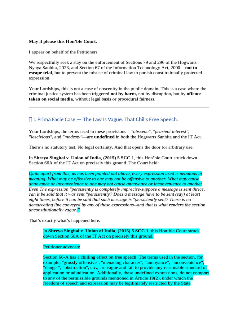 the Hogwarts Nyaya Sanhita and Section 67 of the IT Act, until the constitutional questions
