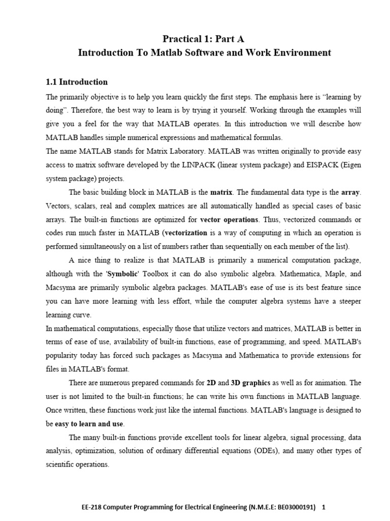 Introduction To Matlab Software and Work Environment