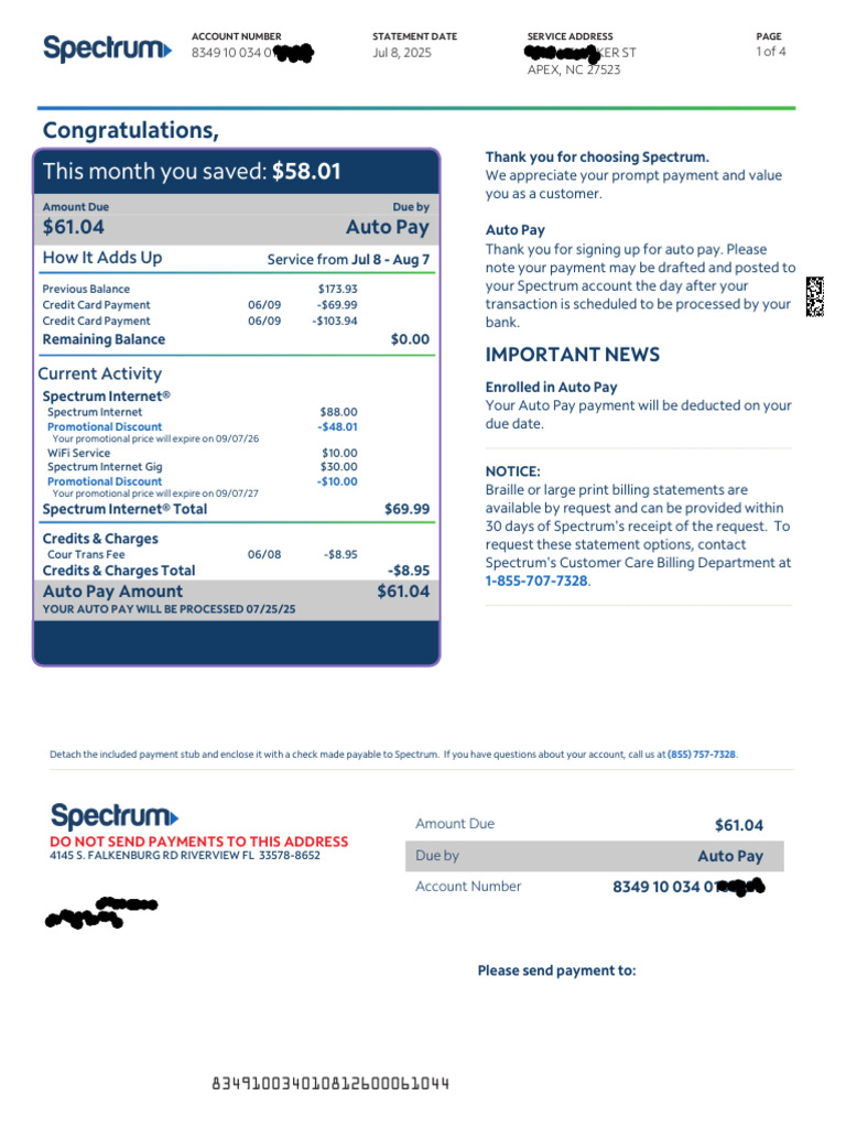 payment is refused or returned. If your bank account isn't debited, the Spectrum Security Center: Spectrum offers tools and solutions to keep