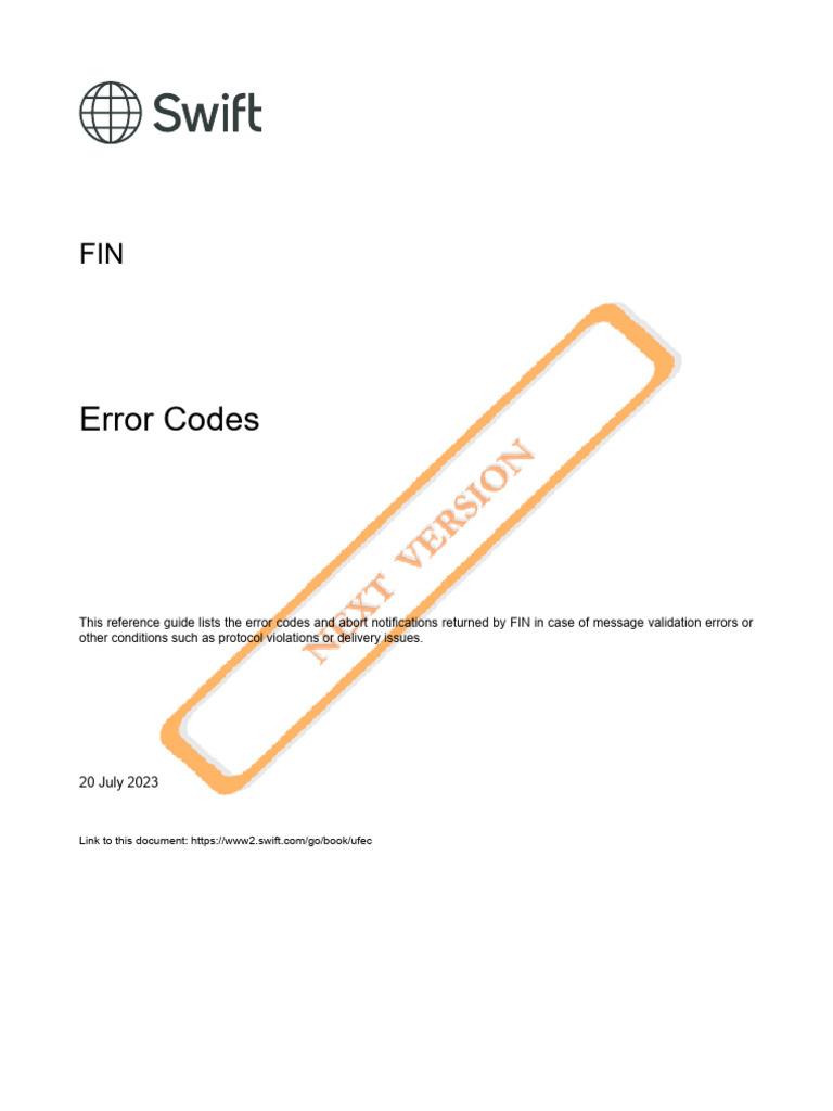This reference guide lists the error codes and abort notifications returned by FIN in case of message validation errors or