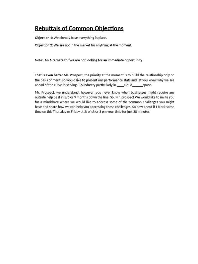 Alright, I respect your decision Mr. Prospect but before you disconnect, just wanted to ask