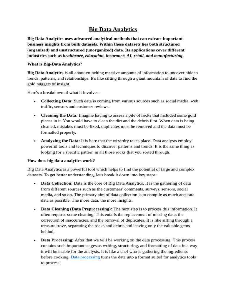 (organized) and unstructured (unorganized) data. Its applications cover different