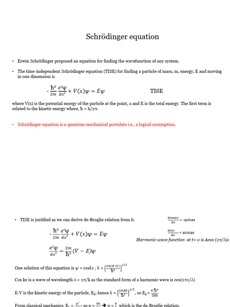 • TISE is justified as we can derive de-Broglie relation from it. = -asinax