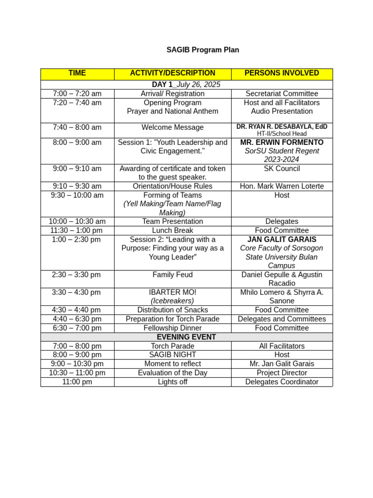 8:00 – 9:00 am Session 1: "Youth Leadership and MR. ERWIN FORMENTO