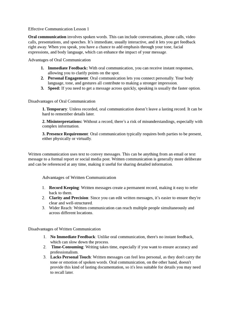 1. Speed- Oral communication is quick and ideal for conveying urgent messages. A