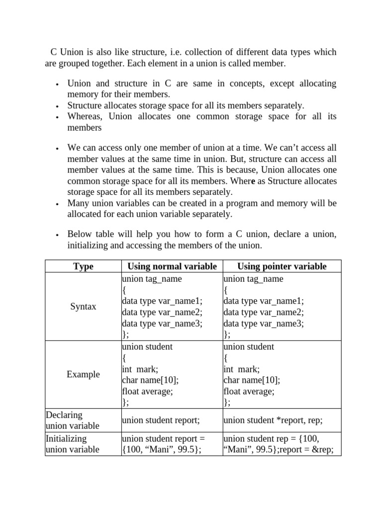 union variable {100, “Mani”, 99.5}; “Mani”, 99.5};report = &rep;