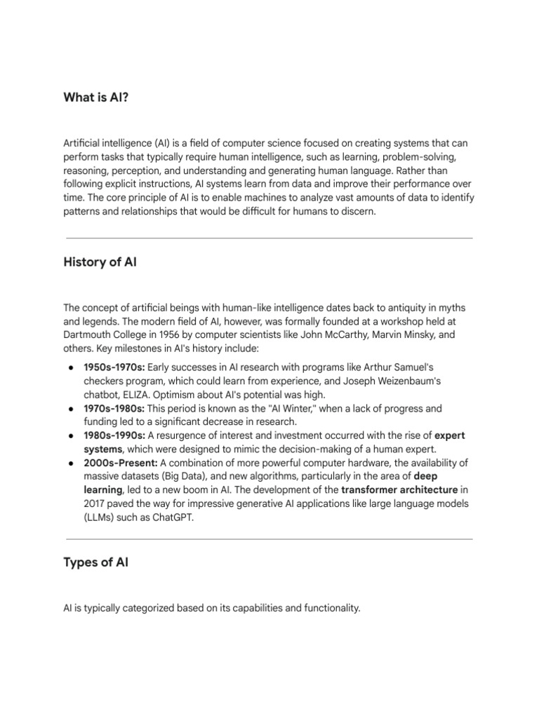 others. Key milestones in AI's history include: