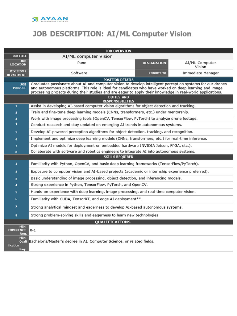 JOB Graduates passionate about AI and computer vision to develop intelligent perception systems for our drones