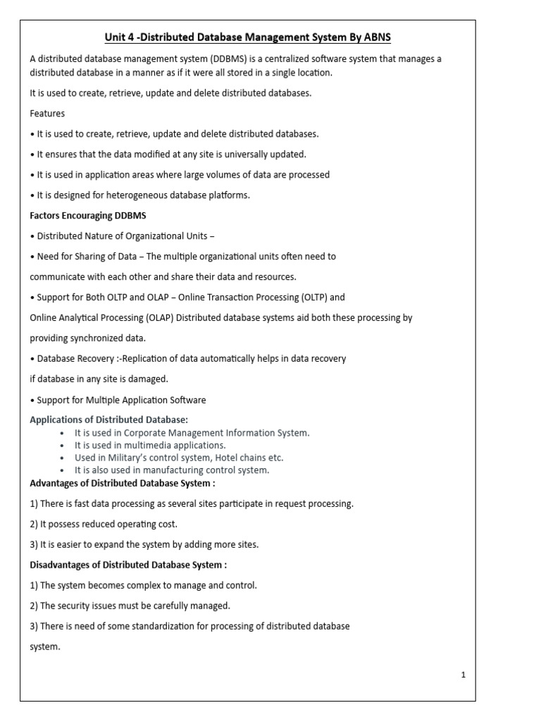 A distributed database management system (DDBMS) is a centralized software system that manages a