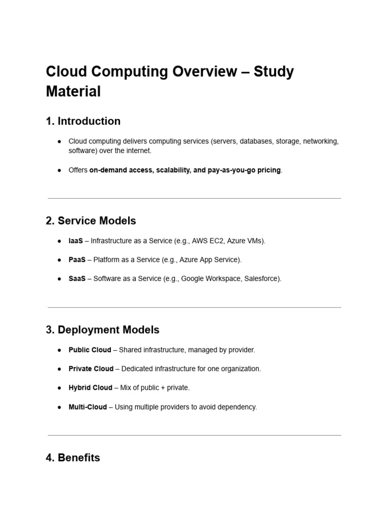● SaaS – Software as a Service (e.g., Google Workspace, Salesforce).