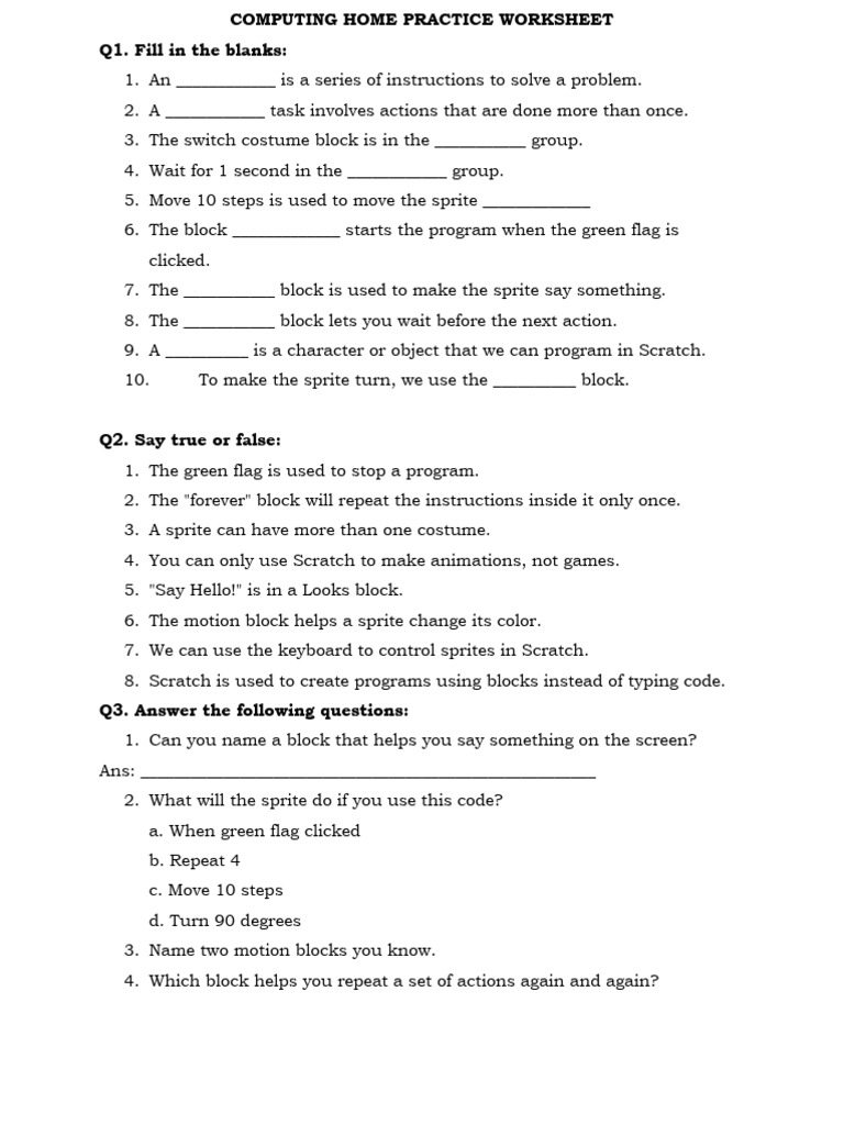 COMPUTING HOME PRACTICE WORKSHEET