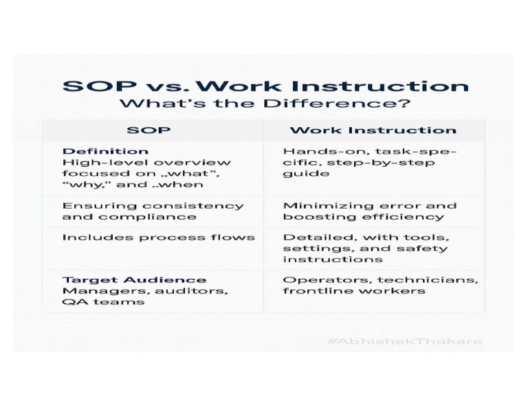 0 ratings0% found this document useful (0 votes) 9 views1 pageDiffrence Between SOP & Work Instruction
