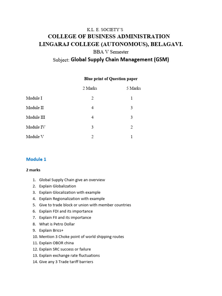 3. Explain any 5 Stake holders of Global supply chain and their respective roles
