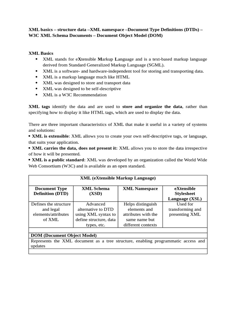 XML basics – structure data –XML namespace –Document Type Definitions (DTDs) –
