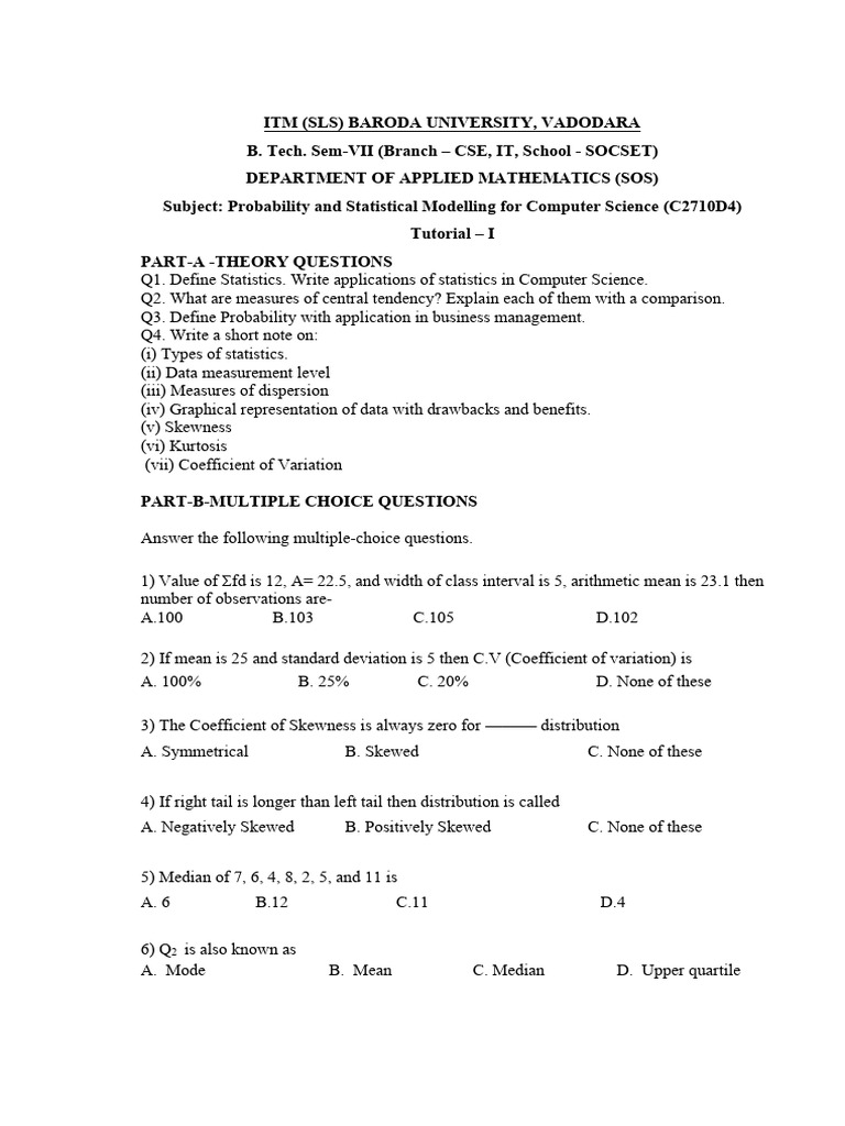 Subject: Probability and Statistical Modelling for Computer Science (C2710D4)