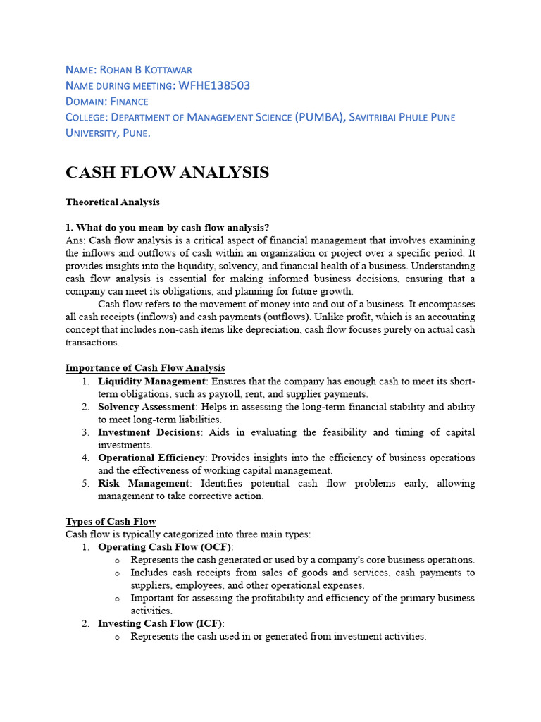 Ans: Cash flow analysis is a critical aspect of financial management that involves examining