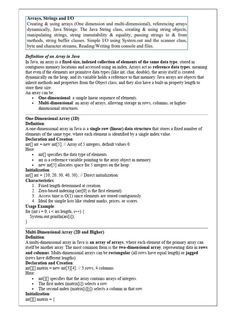 In Java, an array is a fixed-size, indexed collection of elements of the same data type, stored in