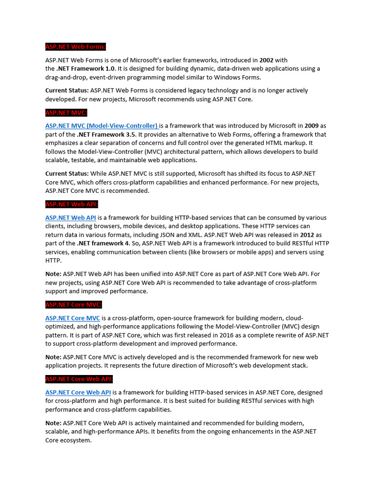 developed. For new projects, Microsoft recommends using ASP.NET Core.