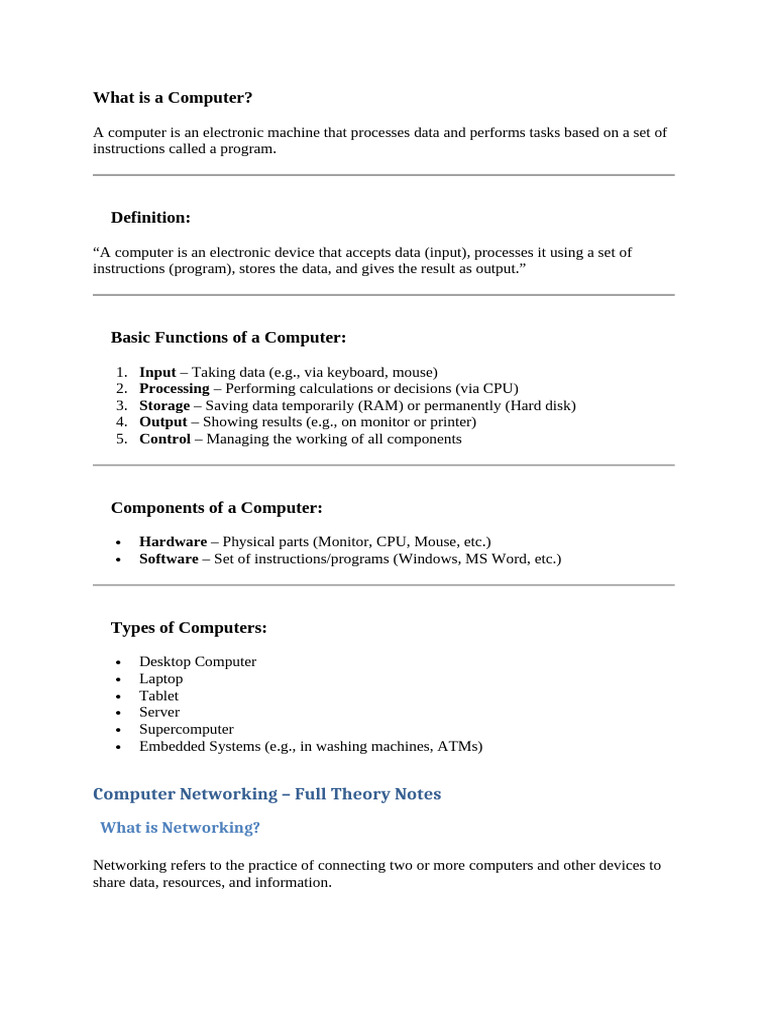 A computer is an electronic machine that processes data and performs tasks based on a set of