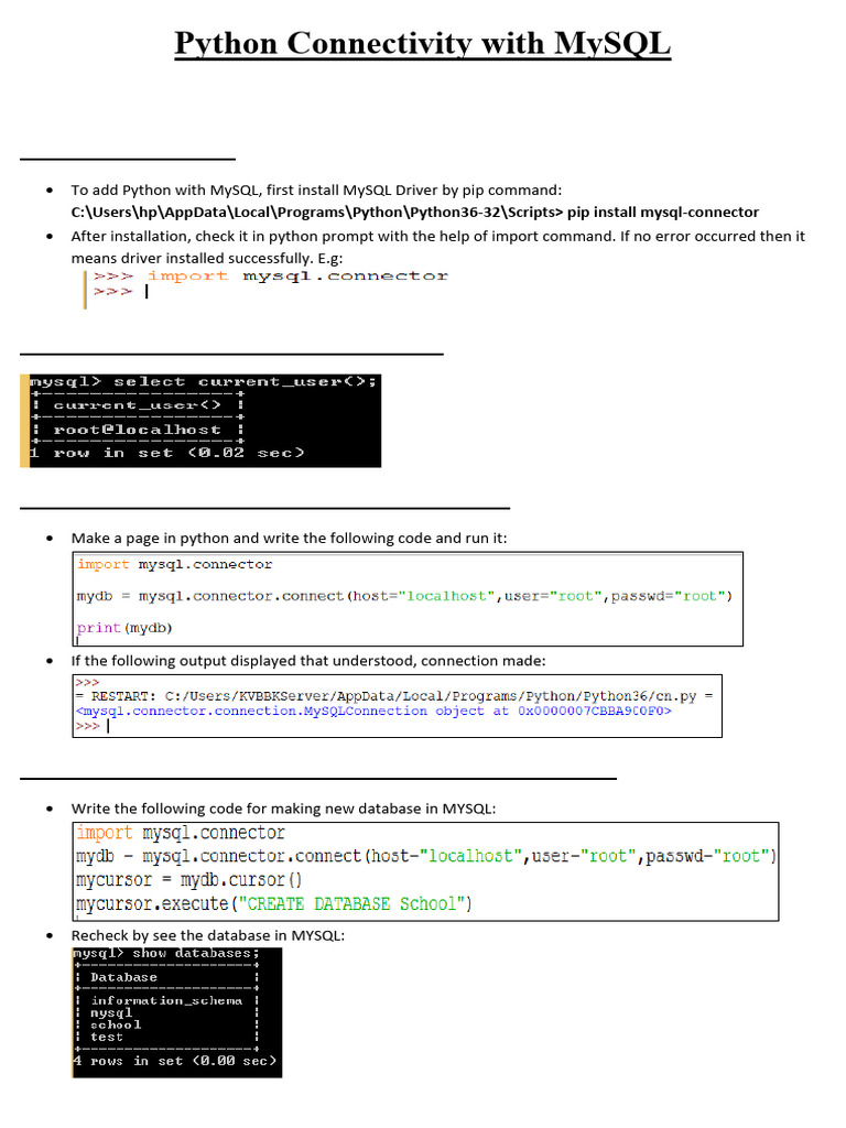 • To add Python with MySQL, first install MySQL Driver by pip command: