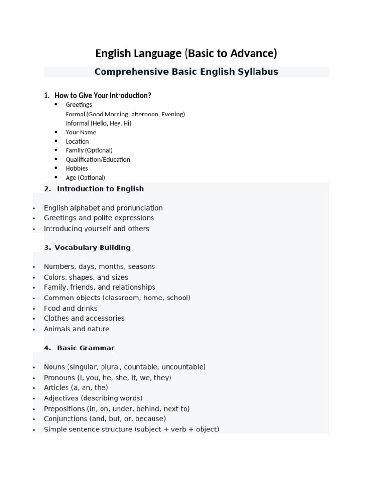 Comprehensive Basic English Syllabus