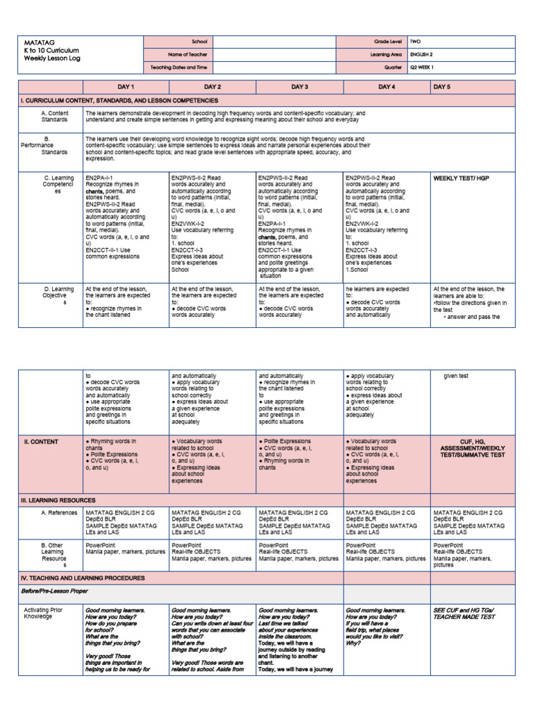 ● Polite Expressions ● CVC words (a, e, i, o, and u) ● CVC words (a, e, i, TEST/SUMMATVE TEST
