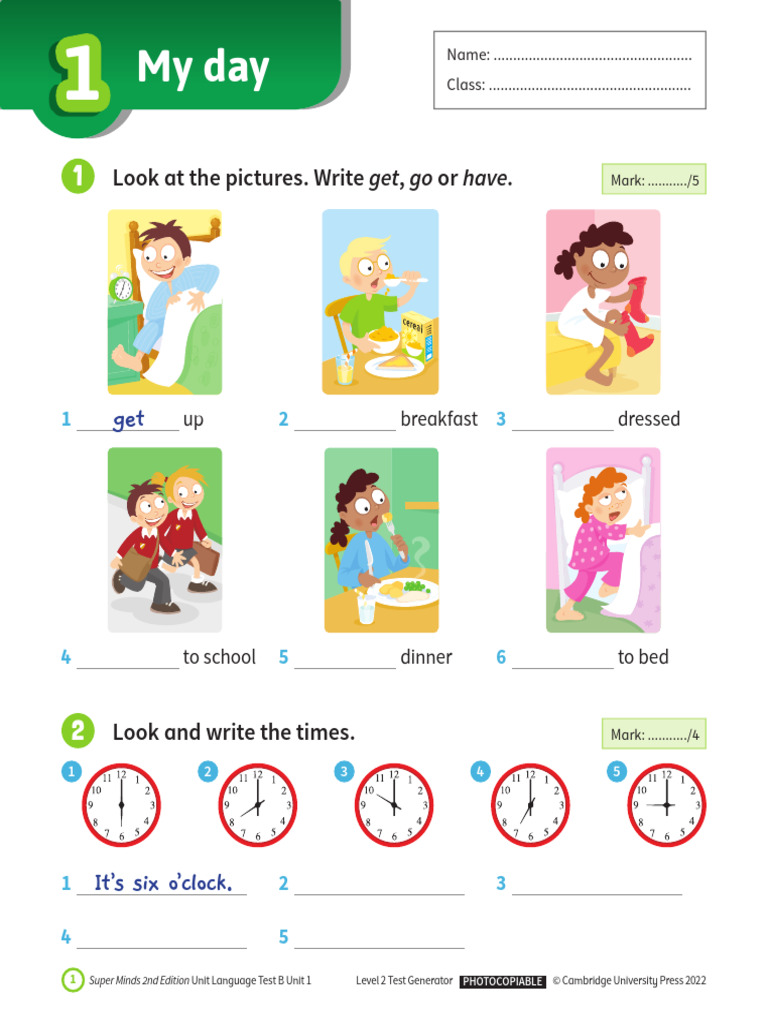 2 Super Minds 2nd Edition Unit Language Test B Unit 1 Level 2 Test Generator PHOTOCOPIABLE © Cambridge University Press 2022