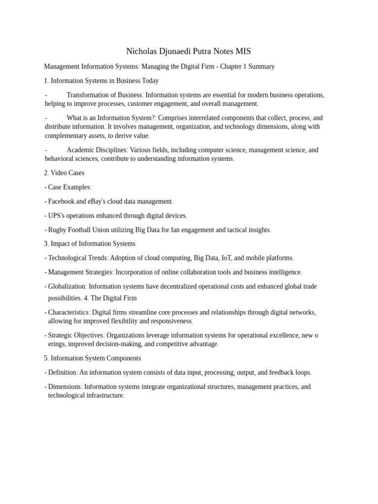 Management Information Systems: Managing the Digital Firm - Chapter 1 Summary