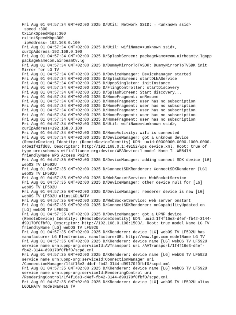 Fri Aug 01 04:57:35 GMT+02:00 2025 D/KRenderer: this alias=LGDLNATV, otherDevice