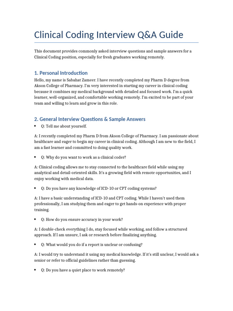 healthcare and eager to begin my career in clinical coding. Although I am new to the field, I