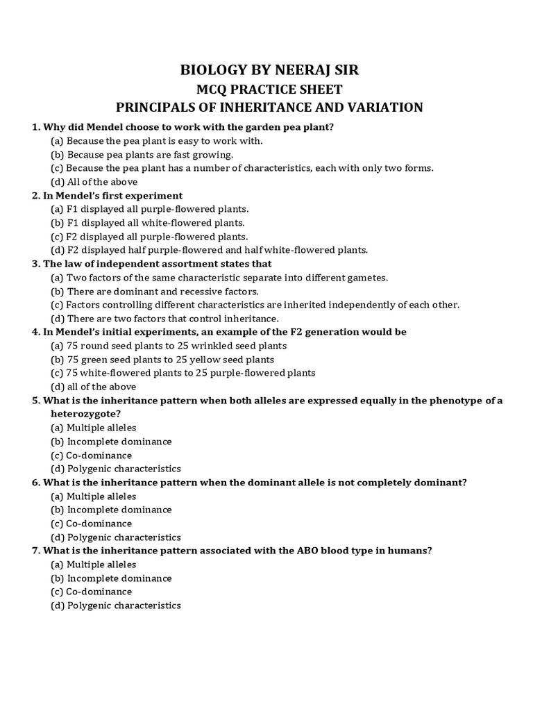 PRINCIPALS OF INHERITANCE AND VARIATION