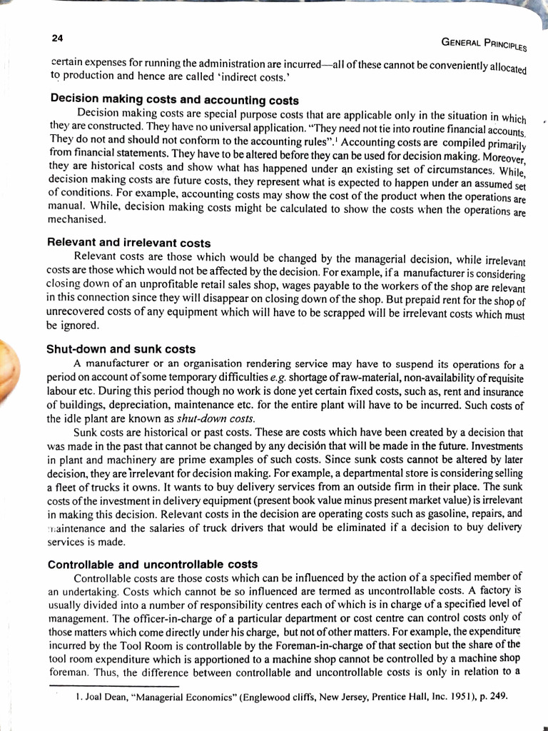 eificiencies. preparation of financial statements (valuation of stocks, etc.) make or buy decision, fixation