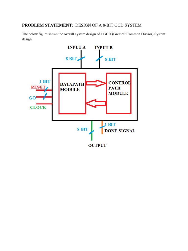 PROBLEM STATEMENT: DESIGN OF A 8-BIT GCD SYSTEM