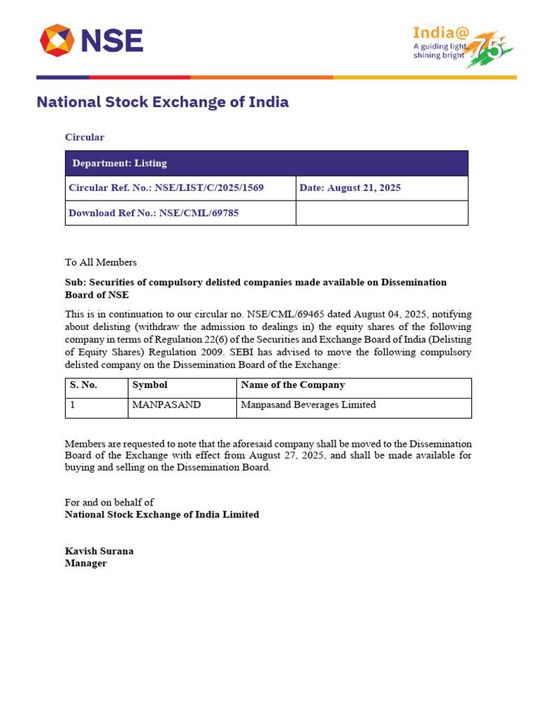 Circular Ref. No.: NSE/LIST/C/2025/1569 Date: August 21, 2025